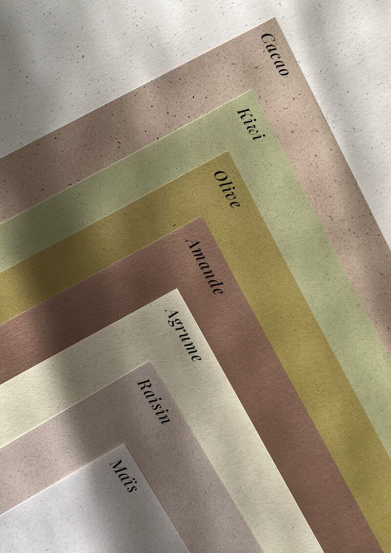 Papier recyclé à plus de 30%. 15% est également remplacé par des déchets agro-alimentaires.